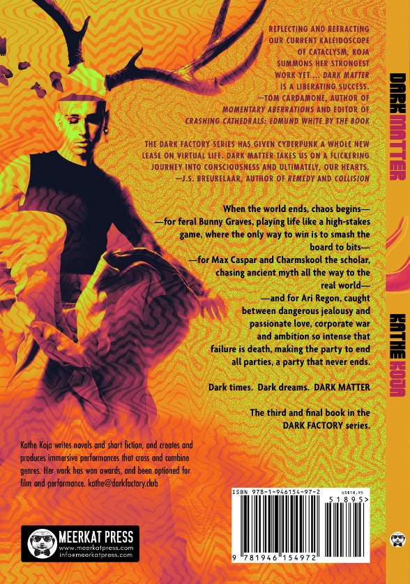 In Dark Matter, in all three Dark Factory books, Ari the producer wrestles with that issue all the time, from underground warehouse parties to divey little bars to the flashy Factory nightclub, then into a wider world of music festivals and gaming, then the top tier arena of VC-fed 24/7 media platforms, he’s forever chasing the best place, the right place where everyone who wants to can come and dance and enjoy. What’s a party without guests? What’s art without engagement?
