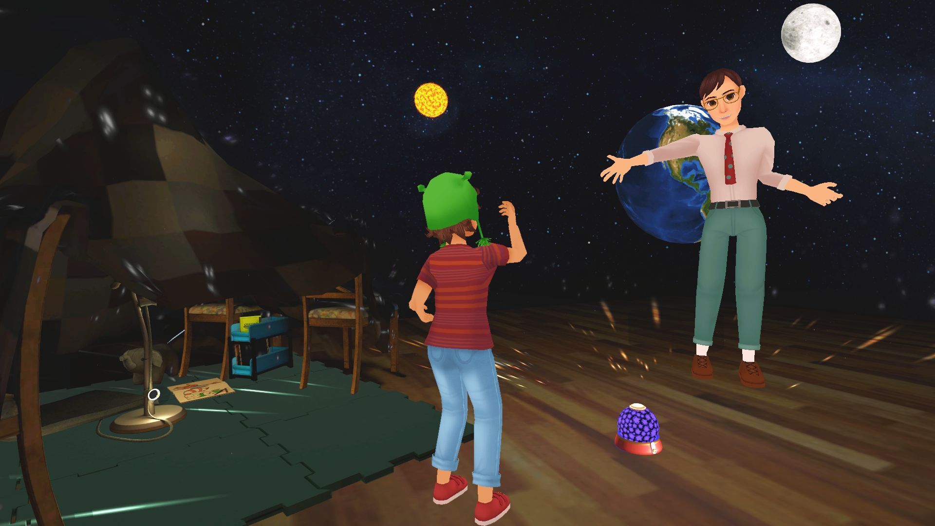 Eventually the class sides to the stone seats, and pairs are set up to perform one after another. While users build in particle effects into their avatars for certain attacks, what’s more important are how they act out an attack versus how the opponent reacts to it.